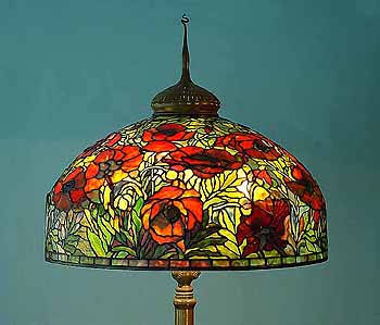 26" Oriental Poppy Tiffany Floor lamp #1902 (red) & Piano Senior Floor base #377
