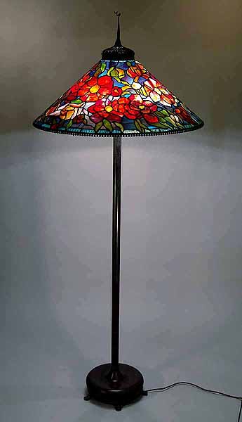 29" Peony leaded glass and bronze Tiffany lamp #603 on Piano Junior Floor base #387