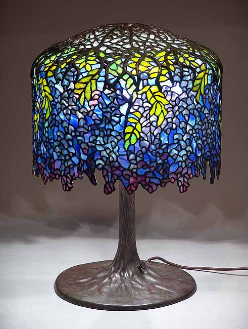 18" BLUE/ PINK WISTERIA leaded glass and bronze Tiffany lamp #342