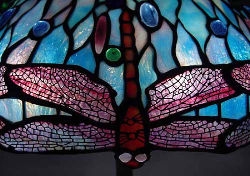 18" Hanging head Dragonfly leaded glass Tiffany lamp