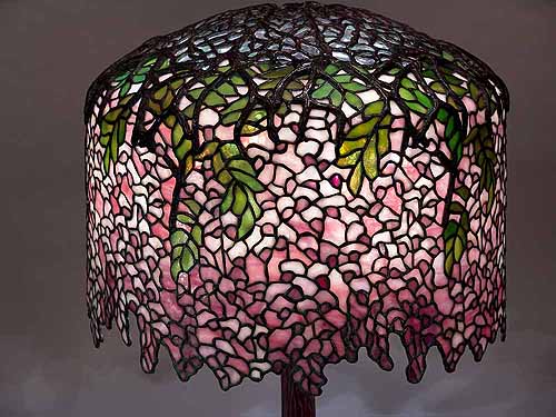 18" Wisteria burgundy leaded glass and bronze Tiffany lamp #342