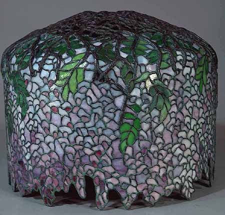 18" Wisteria burgundy leaded glass and bronze Tiffany lamp #342