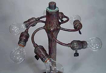 CHERRY TREE leaded glass and bronze Tiffany lamp # 351 & TREE TRUNK bronze casted lamp base #269/ 6