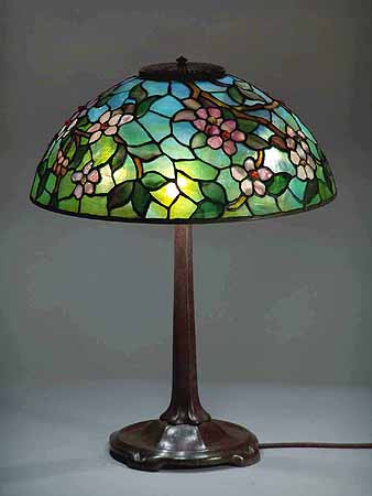 16" APPLE BLOSSOM #1455 Tiffany Lamp shade & SMALL STICK Bronze casted Tiffany Lamp base #533