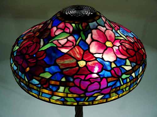 Two 18" Peony Tiffany Lamps #1475 on Twisted Vine bronze cast lamp bases #445